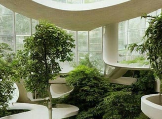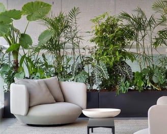 Plantas y jardines interiores que mejoran la calidad del aire y el bienestar de los usuarios.